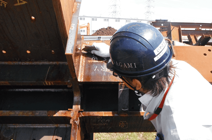 検査では、建築発注に伴う鉄骨検査の合否判定を実施しております、安全で長く使用できる建物を維持するために、日々最新の法令及び機材等の邁進を取り入れております。